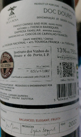 Notas de prova:  Bonita e profunda cor violeta; aroma franco e intenso com a habitual combinação de fruta madura e floral tão característica dos grandes Douros. Generoso e muito sedutor, é um vinho cheio de sabor e personalidade, mas sem excessos. O volume de boca é equilibrado e apresenta taninos macios e madeira quase imperceptível. O final de boca é muito longo, fazendo mostrar-se uma suave fruta complexa e quase interminável.