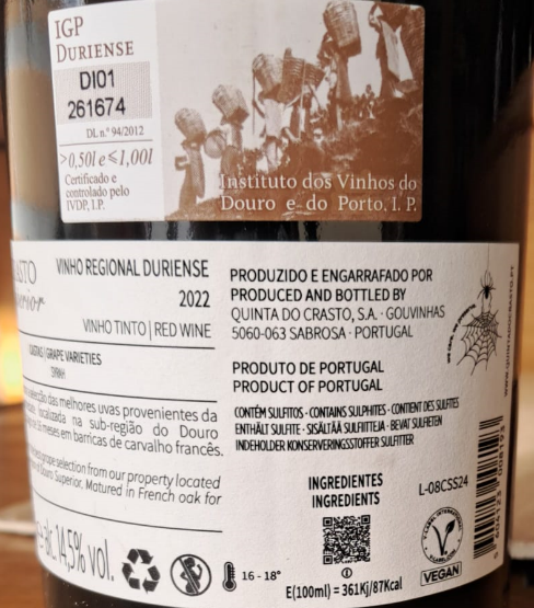 Nota de Prova: Com uma cor ruby carregado, de excelente expressão aromatica que surpreende no nariz pelas intensas notas florais, bem integradas com aromas de frutos silvestres maduros e especiaria fina. Na boca inicia de forma harmoniosa, evoluindo para um vinho de grande seriedade , onde encontramos uma estrutura compacta, de taninos de textura fina.Termina elegante e com excelente presistencia. O Crasto Superior Syrah é um vinho sedutor que mantêm um perfil fresco e elegante, com um excelente potencial de envelhecimento em garrafa.