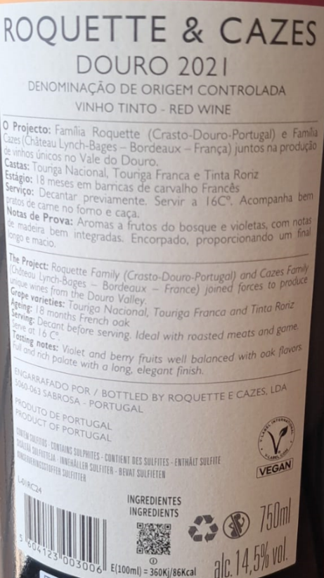Vinho Roquette & Cazes Tinto 2021 75Cl