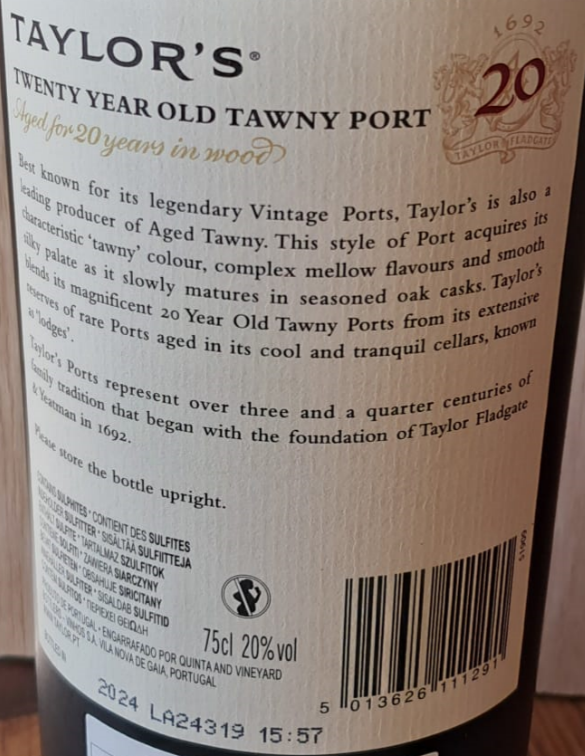 Notas de Prova:Intensa cor âmbar-aloirada. Nariz opulento e voluptuoso de complexas especiarias, aromas gulosos e de frutos secos, toques de flor de laranjeira e uma delicada madeira proveniente do longo período de envelhecimento em casco. O paladar está cheio de sabores muito ricos e concentrados e tem um longo e aveludado final.